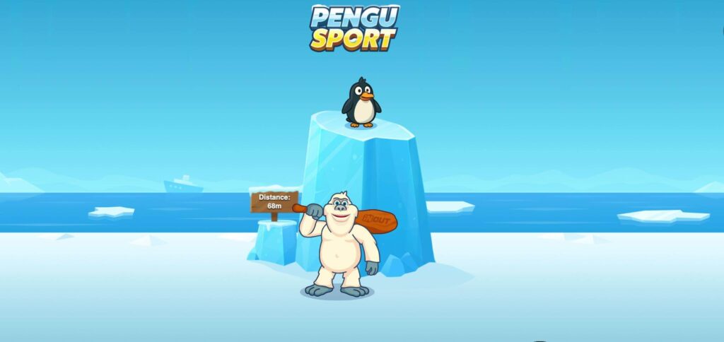One of the most distinctive parts of pengu sport is its presentation. The game uses a bright blue palette, icebergs, floating ice, ocean scenery, and cartoon animation to create a playful sports-meets-arcade atmosphere. The official InOut page describes it as arctic action, and that description fits the visual identity shown in the uploaded screenshot. (inout.games)